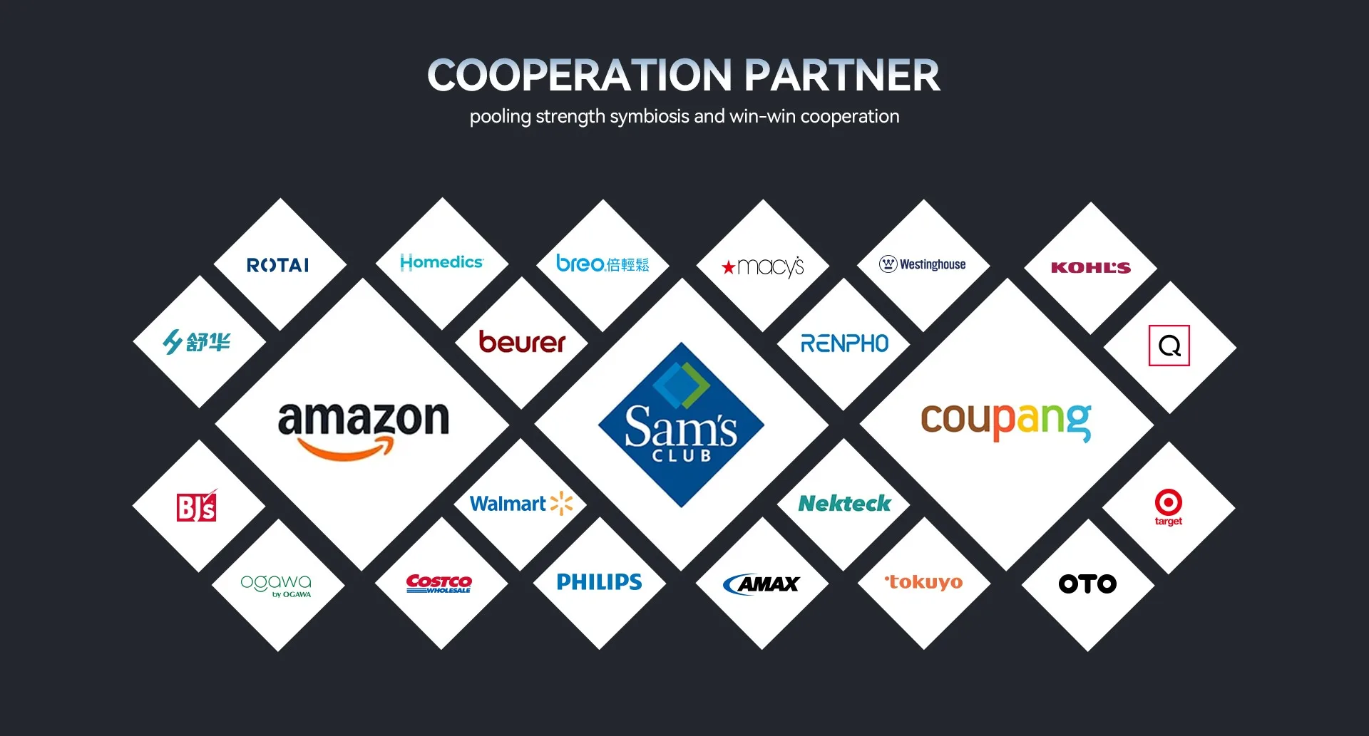 Ana ürünler:Boyun masajı, masaj tabancası, ayak masajı, masaj yastığı, masaj yatağı